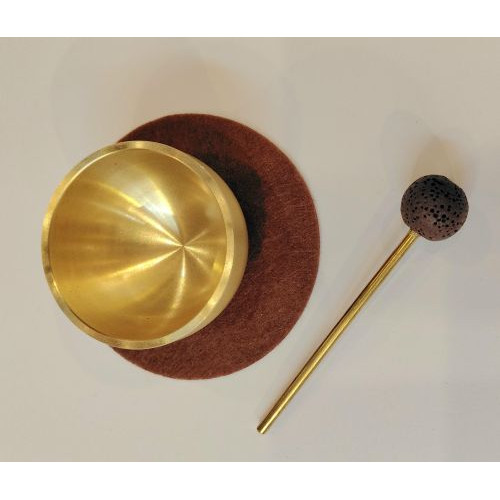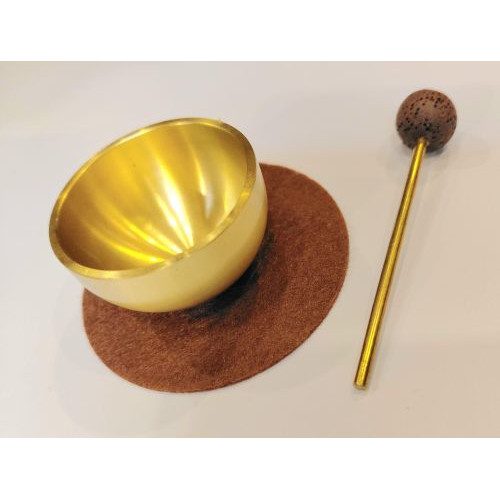 No misiņa-bronzas sakausējuma veidota mini dziedošā bļodiņa, ko ērti paņemt plaukstā. Meditācijai un skaņas terapijai. Augstums 2,5 cm, diametrs 4 cm, sieniņas biezums 1,5mm. Komplektā metāla kociņš ar korķa galviņu.